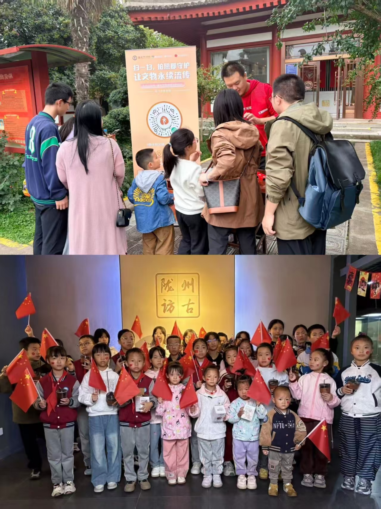 以技提质,拓展边界。各博物馆积极运用科技手段升级展览与体验,同步创新推出线上活动,进一步增强观众的沉浸感与参与度。宝鸡先秦陵园博物馆将数字化技术引入车马坑大棚内,通过虚拟技术重现当时的车马场景,让游客仿佛穿越回历史现场。法门寺博物馆开展“喜迎国庆 好礼送不停”线上抽奖活动。陇县博物馆推出福利活动,观众凭朋友圈转发“喜迎国庆,打卡博物馆”信息,即可领取专属陇县博物馆的文创产品。全市各博物馆还联合推出腾讯久久公益节“数字市文物全民守护行动”活动,观众在观展之余扫码打卡,拍照馆藏文物并上传精彩瞬间,不仅能为博物馆助力,还可领取“小红花”奖励,获取“数字文物守艺人”证书,在互动中提升文物保护意识。