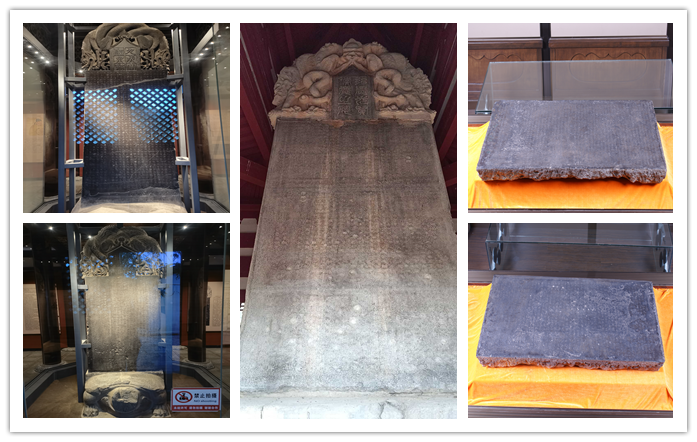 (图左上:唐九成宫醴泉铭碑;图左下:唐万年宫铭碑;图中:杨珣碑;图右上:唐应从重真寺随真身供养道具及恩赐金银器物宝函等并新恩赐到金银宝器衣物账碑;图右下:大唐咸通启送岐阳真身志文碑)