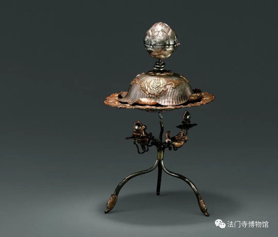 中国是茶文化的故乡,饮茶之风由来已久,茶道文化更是源远流长。法门寺地宫出土以唐僖宗皇帝小名——“五哥”标记的系列茶具,设计科学,造型优美,质地精良,配套合理,使用方便,具有很高的工艺水准,是迄今为止发现时代最早、器型品类最完整、制作最为精美的茶具。它是历代史料和茶文化典籍中从未揭示过的历史文物,为20世纪茶文化考古最为重要的发现。它的出土,标明了博大精深的大唐茶文化的历史源头和最高层次,填补了茶文化史研究的空白,实证茶道之源在中国。因此,法门寺博物馆系列茶具文物受到故宫博物院的关注,遴选出包括唐鎏金鸿雁纹银茶槽子、唐鎏金团花纹银碢轴、唐鎏金飞天仙鹤纹茶罗子、唐鎏金摩羯鱼三足架银盐台、唐鎏金飞鸿纹银则以及唐素面淡黄色琉璃茶托、唐素面淡黄色琉璃茶碗等11件组精美文物参加此次展览,用于展示唐代皇家宫廷茶文化。