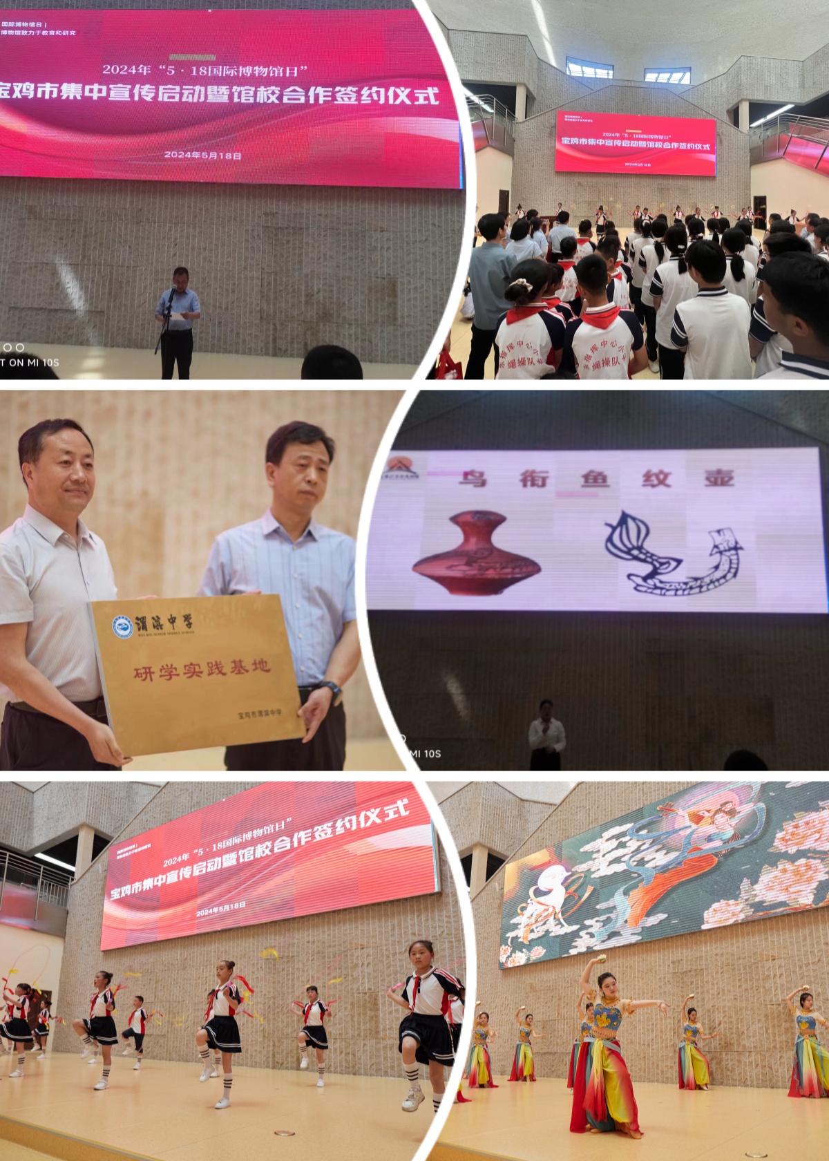 在主会场的启动仪式上,举行了馆校共建教育基地签约授牌活动,开展了“听我讲文物”交流展示,渭滨中学、渭滨职教中心、凤翔东指挥中心小学等馆校共建单位表演了精彩节目。