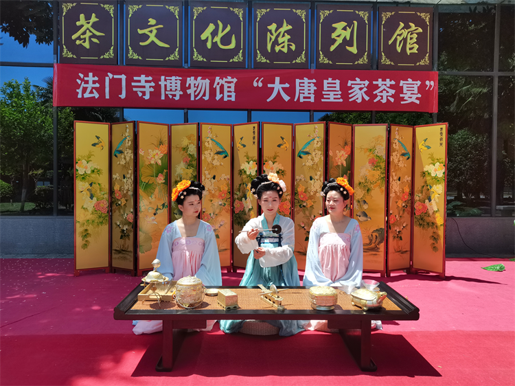 35年来,法门寺博物馆坚持“学术立馆、文化先行”的理念,开展了法门寺文化多领域、全方位学术研究工作,在在茶文化研究方面,先后召开了5届茶文化国际学术研讨会,围绕茶文化、茶学、茶道、法门寺宫廷茶具展开交流研讨,并举办了中外茶道、茶艺、茶礼表演交流,成果颇丰。法门寺博物馆已被公认为我国茶文化研究的重镇之一,在中国茶文化界可谓独树一帜。同时还排演了《大唐皇家茶宴》表演,并于2019年荣获“马连道杯”全国茶艺表演大赛一等奖。这套茶具也于今年参加了故宫博物院举办的“茶·世界——茶文化”特展。