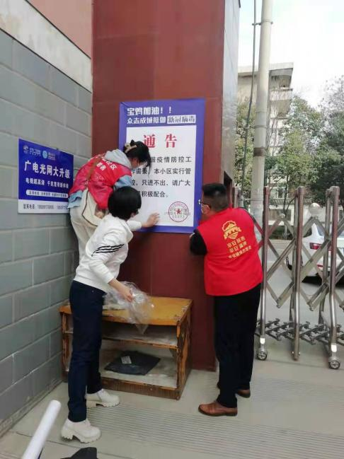 协助社区给辖区内小区贴通告。