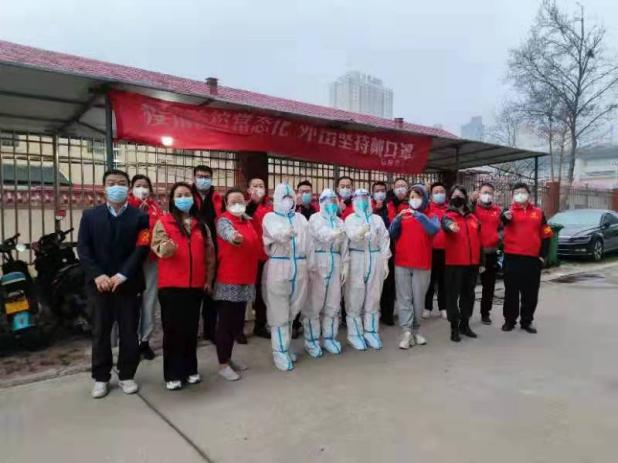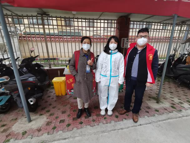 核酸结束后医护人员和志愿者合影。