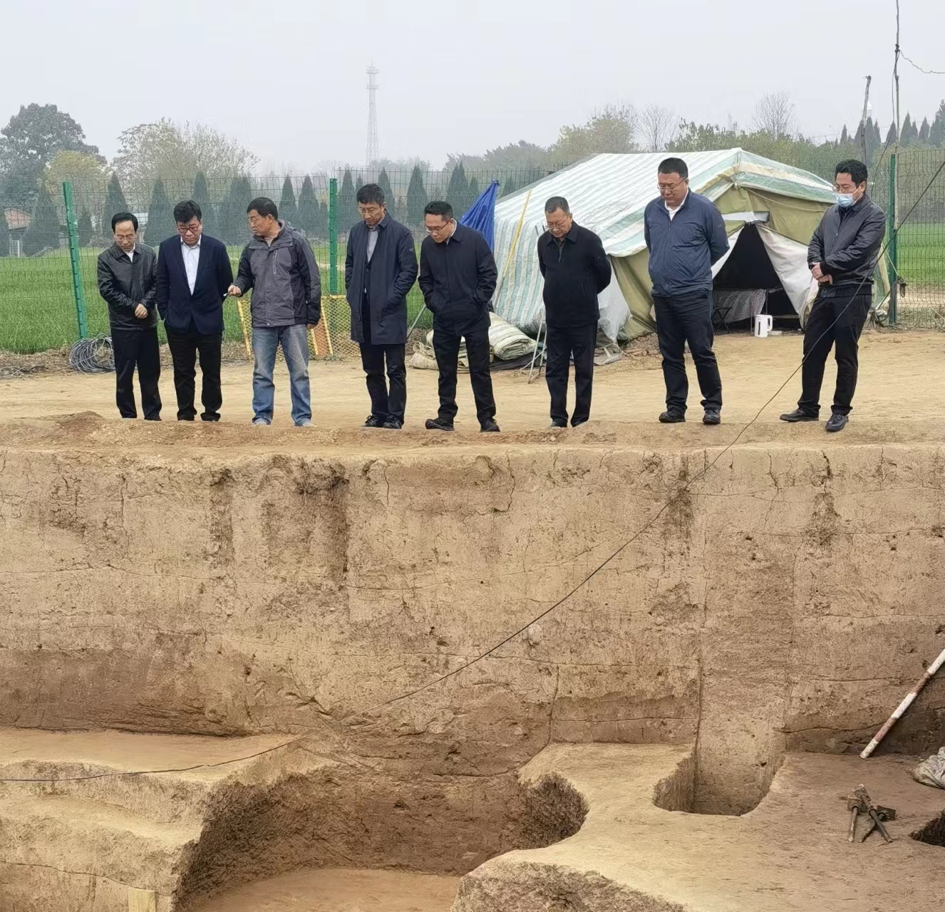 11月18日,省文物局局长罗文利参加了陕西省对台交流基地对台揭牌仪式后,对我市文物保护与考古工作进行调研。罗文利局长一行先后现场查看了魏家崖遗址、下站遗址、瓦窑头建筑遗址等考古发掘项目,调研了解了先秦陵园博物馆文物保护工程及水沟遗址保护情况,听取了雍城工作站考古工作汇报。