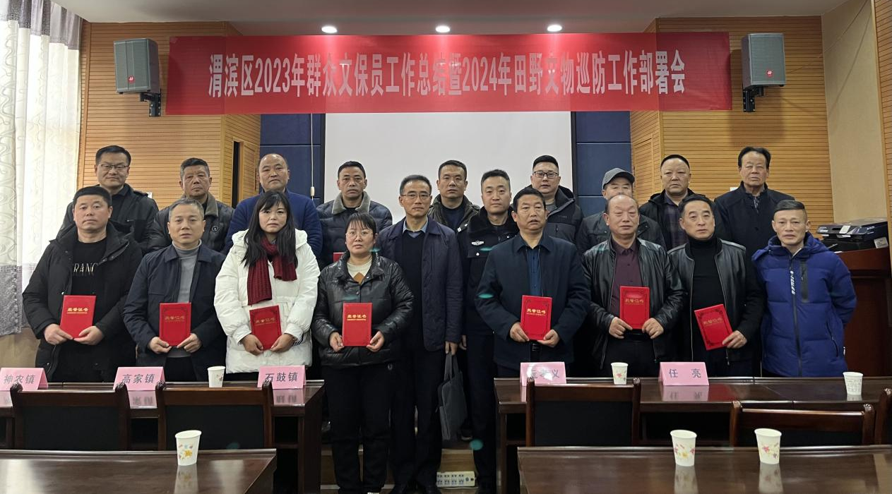 新年伊始,渭滨区于1月5日下午召开2024年田野文物安全巡防工作部署会。会上,渭滨区博物馆馆长王敬元对2023年田野文物安全情况及今年巡查工作要求进行总结部署;区文物局业务股股长吴军宣布对全区在文物保护工作中作出突出贡献的15名先进个人予以表彰;公安渭滨分局刑侦大队二中队指导员杨帆通报2023 年打击文物犯罪工作成果,并对防范巡视工作要点予以指导,市文物局党组成员、二级调研员李文昌出席会议并讲话。