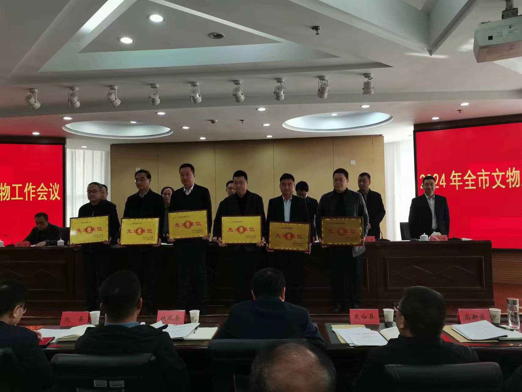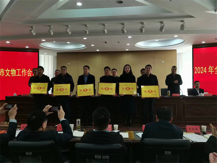 会议传达了蔡奇同志在文化遗产保护传承座谈会上的讲话精神、全国及全省文物局长会议精神;通报表彰了2023年度全市文物工作、文博项目建设、文物安全(消防)工作先进单位;岐山县政府等3个单位作了交流发言;市政府与各县区政府签订了《文物安全责任书》;市文物局局长刘宏斌做了题为《加大保护传承 深化活化利用——为全市经济社会发展贡献文物工作力量》的工作报告。